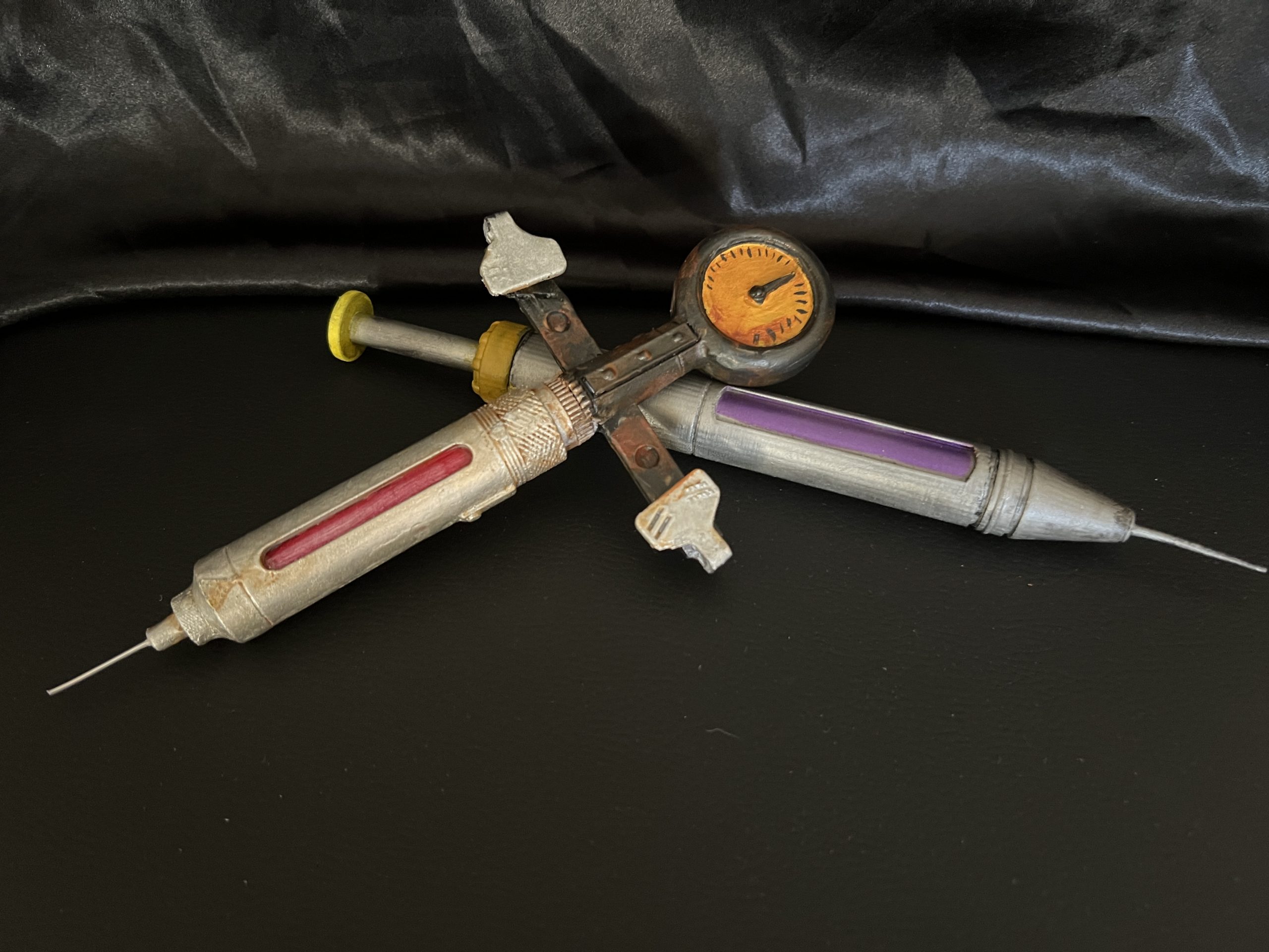 As for my props, a lot of them required I do my own pattern drafting. This was honestly so fun to try out since I really got to see my prop be created from start to finish. I had to study lots of reference images and learn to use different techniques to make everything look weathered, worn and even rusted or damaged. My airbrush was truly my best friend during these projects.